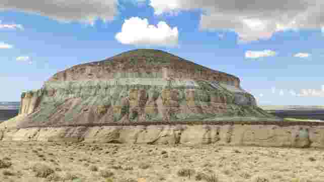 Sherkala is a famous limestone mountain-outlier in the Mangystau Region of Kazakhstan, known for its unique shape and historical significance.