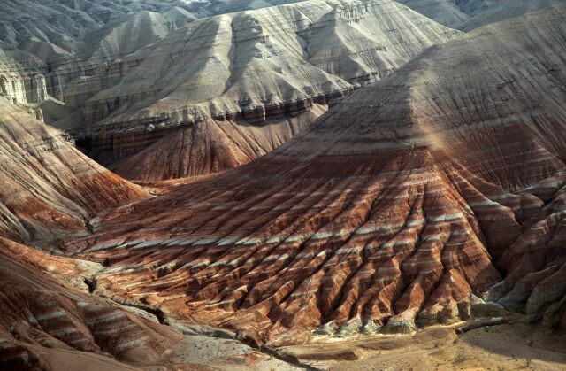 Aktau Mountains in Altyn-Emel National Park unveil surreal, alien-like landscapes that feel straight out of a sci-fi movie. Their striped, multicolored canyons form a vast natural maze, perfect for hiking and photography. This open-air geological museum holds layers of ancient sediment up to 1000 meters high — remnants of a prehistoric lake or the Tethys Ocean. A dream for geology lovers and adventurers alike, Aktau stuns year-round, with spring and autumn offering the most comfortable travel conditions